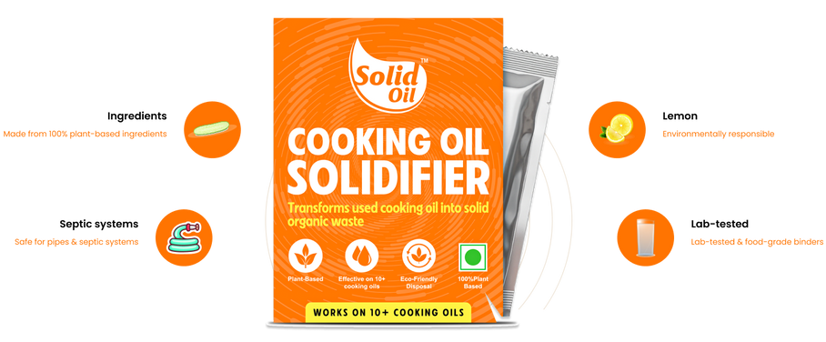 Meet the eco-friendly kitchen hero. Solid Oil transforms leftover cooking oil into a solid, disposable block safe for your home and the environment. Sprinkle into warm oil, stir, and watch the magic. In minutes, your messy liquid oil becomes solid...
